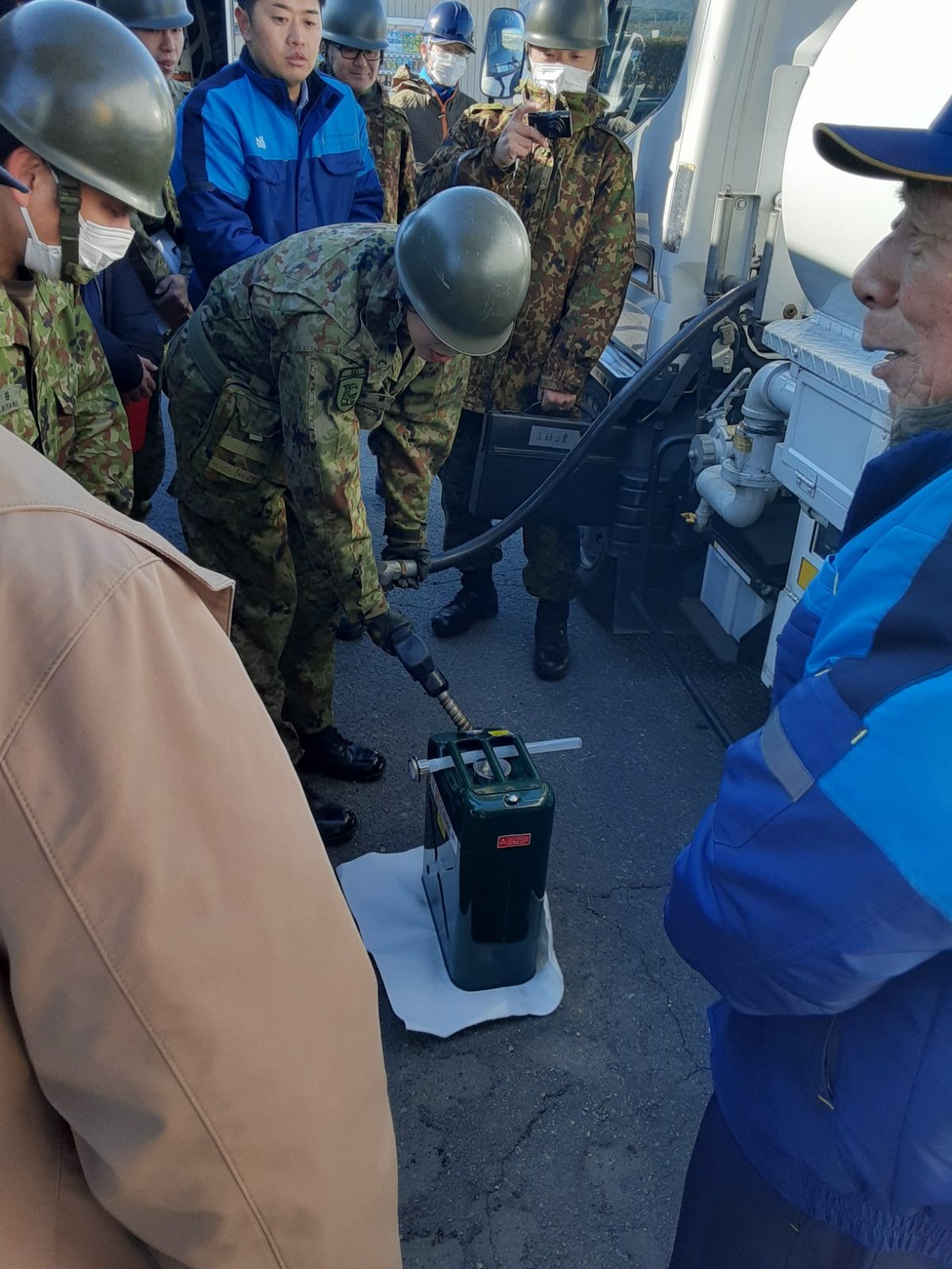 有限会社山室石油 配送センターにて、陸上自衛隊へ燃料供給
