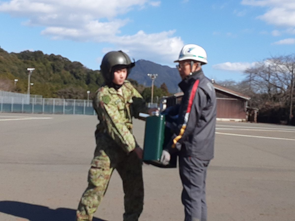 尾鷲市にある広域防災拠点にて、ヘリコブターで空輸された燃料を、有限会社高村石油様が受け取り、尾鷲総合業院へ運搬し給油